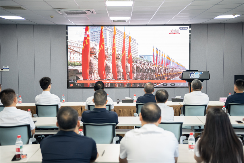 9月3日上午,中国人民抗日战争暨世界反法西斯战争胜利80周年纪念大会在北京天安门广场隆重举行。通用股份党委组织全体党员集体观看大会直播